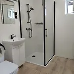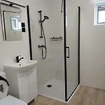 Eine Terrasse bietet zudem einen Ausblick auf den Garten. Diese Unterkunft verfügt über ein Badezimmer mit einer behindertengerechten Dusche und einer getrennten Toilette.